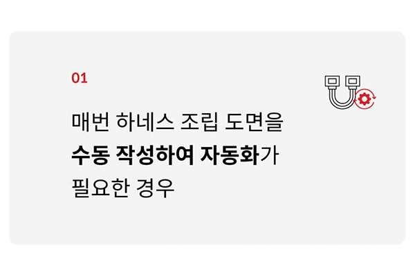 기존 도면 데이터를 학습해 전형적인 회로 배치나 배선을 자동으로 배치합니다. 하네스 케이블 데이터를 추출하여 제작 도면을 자동으로 생성할 수 있습니다. |